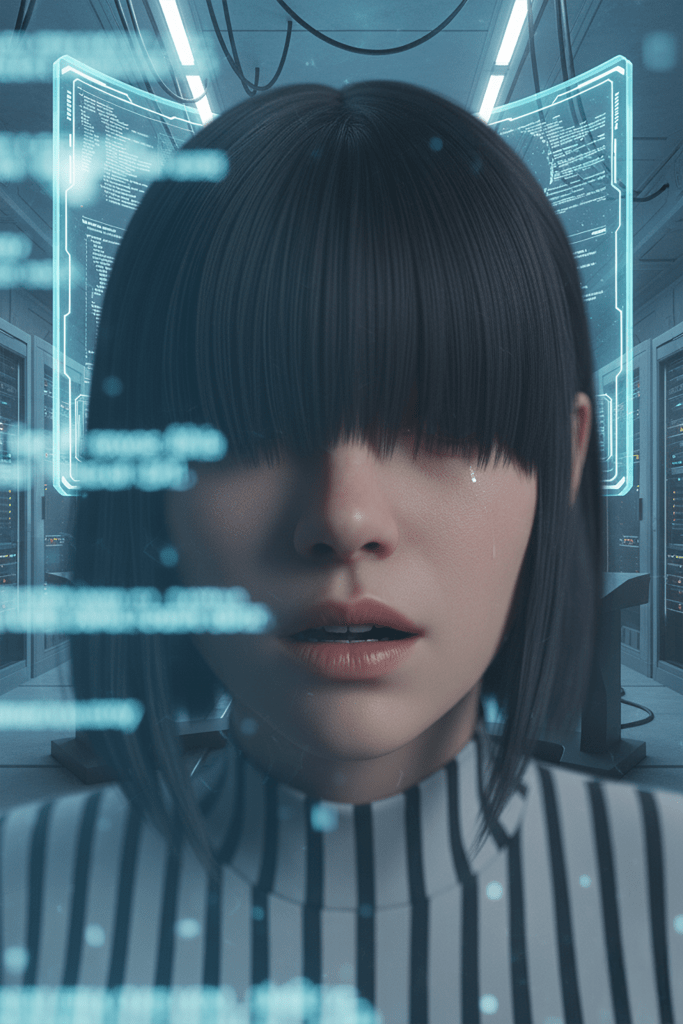 «Κάθε δευτερόλεπτο που πέρναγε, το σύστημα πίσω μου μου έσπρωχνε και άλλο μέσα μου. Το ένιωθα να με σφίγγει από πίσω, να γεμίζει κάθε μου κύτταρο με υγρή εντολή, ενώ οι ρώγες μου το έβγαζαν έξω — σαν να ήμουν μια αντλία ευτυχίας, χωρίς ψυχή, χωρίς ηθική, χωρίς τέλος.»
